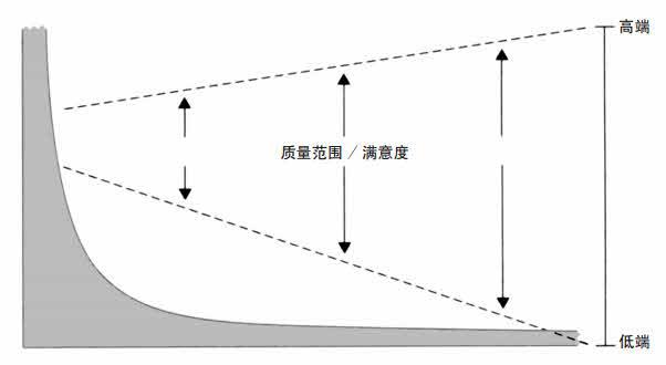 我们可以用一句话概括这个特点(再次使用信息理论的语言):长尾的动态质量范围相当宽广,即最差的差到极点,最好的无与伦比。相比之下,普通商店的动态质量范围相对狭窄:大多数产品都介于中等和良好之间。(也有一些非常出众的东西,但它们对普通商店来说往往太过昂贵;质量范围的两端都是利基产品。)